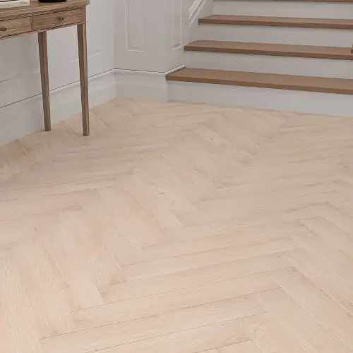 Belgravia Oak Herringbone Laminate Flooring features a stylish 8mm herringbone design with natural oak tones, offering durability, elegance, and easy maintenance for modern interiors.