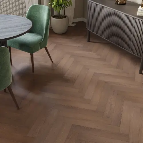 Chelsea Oak Herringbone Laminate Flooring blends classic oak tones with an 8mm herringbone pattern, offering durability, elegance, and easy upkeep for timeless modern interiors.